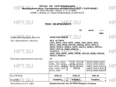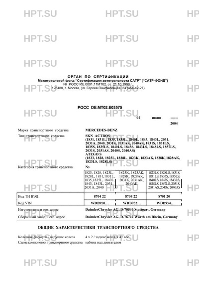 | Категория ТС | N3 1823, 1828, 1823L, 1828L, 1831,1831L, 1835,1835L, 1840L, 1843, 1843L, 2031, … |