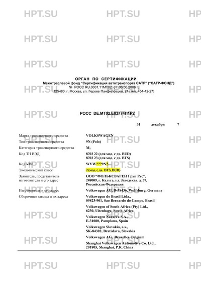 | Тип ТС | 9N (Polo) |
