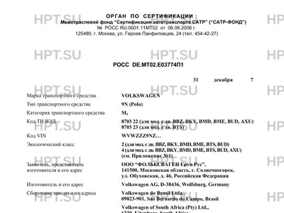 | Код ТН ВЭД | 8703 22 (для мод. с дв. BBZ, BKY, BMD, BME, BUD, AXU)8703 23 (для мод. с дв. BTS) |