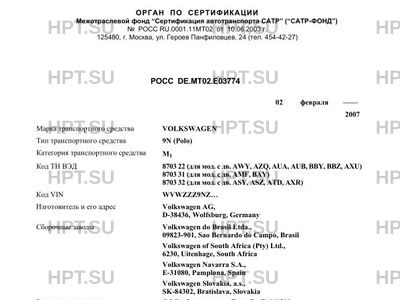 | Код ТН ВЭД | 8703 22 (для мод. с дв. AWY, AZQ, AUA, AUB, BBY, BBZ, AXU); 8703 31 (для мод. с дв. AMF, BAY); 8703 32 (для мод. с дв. ASY, ASZ, ATD, AXR) |