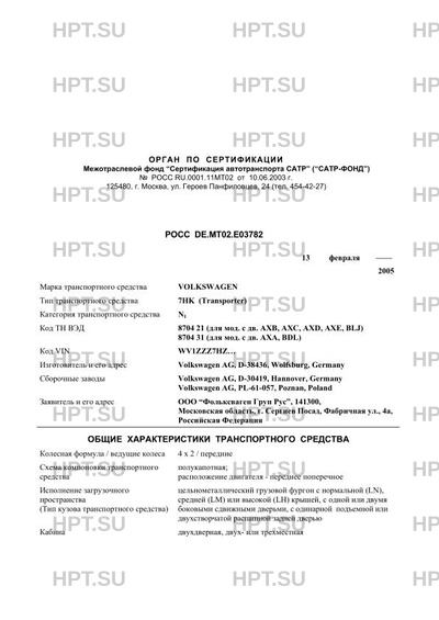 | Код VIN | WV1ZZZ7HZ… |