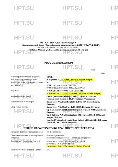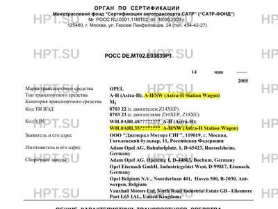 | Код VIN | W0L0АНL35???????? А-Н/SW (Astra-H Station Wagon) |