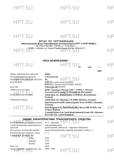 | Тип ТС | А-Н (Astra-Н) |