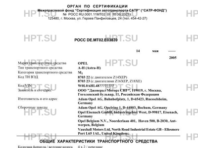 | Марка ТС | OPEL |