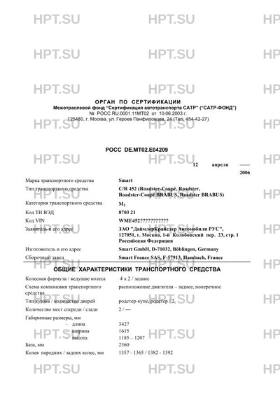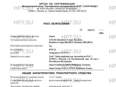 | Тип ТС | C/R 452 (Roadster-Coupeé, Roadster, Roadster-Coupeé BRABUS, Roadster BRABUS) |