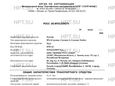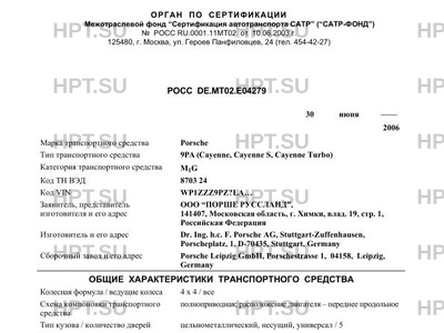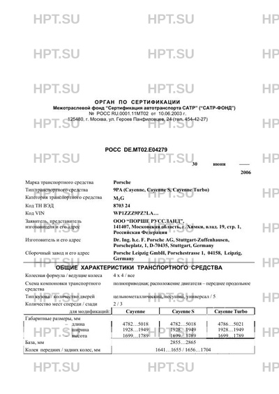 Тип ТС 9PA (Cayenne, Cayenne S, Cayenne Turbo)