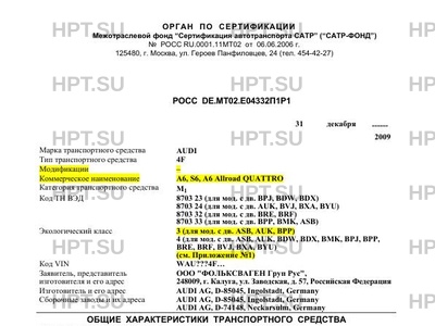 | Коммерческое наименование | 4F (A6, S6, A6 Allroad QUATTRO) |