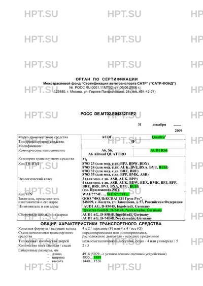 | Коммерческое наименование | 4F A6, S6, A6 Allroad QUATTRO AUDI RS6 |