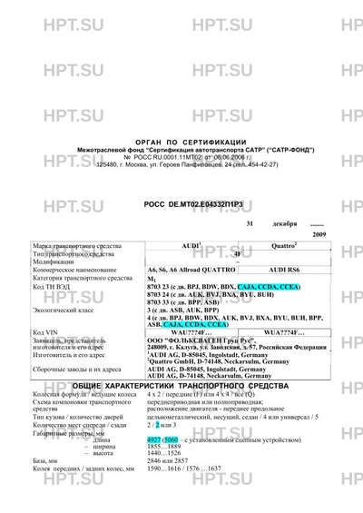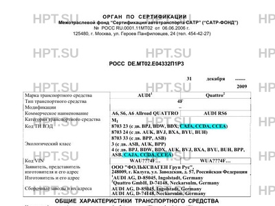 | Коммерческое наименование | 4F A6, S6, A6 Allroad QUATTRO AUDI RS6 |