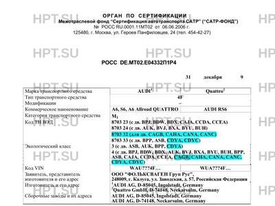 | Коммерческое наименование | 4F A6, S6, A6 Allroad QUATTRO AUDI RS6 |