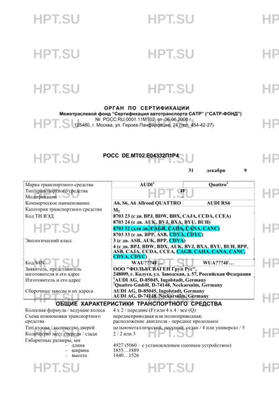 | Код ТН ВЭД | 8703 23 (с дв. BPJ, BDW, BDX, CAJA, CCDA, CCEA) 8703 24 (с дв. AUK, BVJ, BXA, BYU, BUH) 8703 32 (для дв. CAGB, CAHA, CANA, CANC) 8703 33 (с дв. BPP, ASB, CDYA, CDYC) |