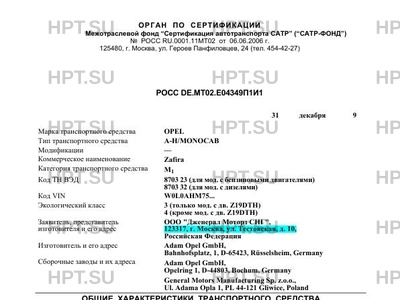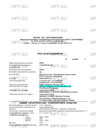 | Марка ТС | OPEL |