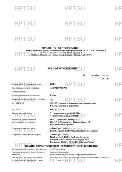 | Коммерческое наименование | A-H/MONOCAB, Zafira |