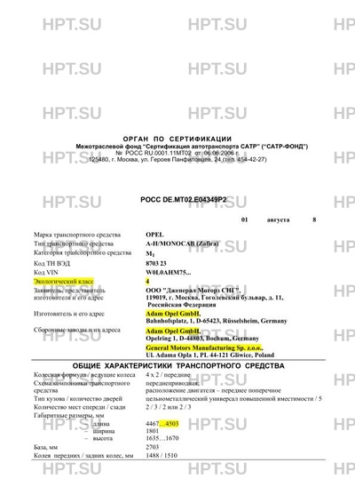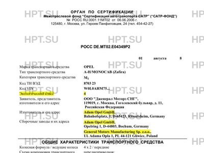 | Тип ТС | A-H/MONOCAB (Zafira) |