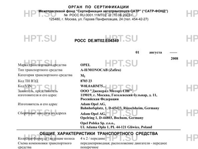 | Тип ТС | A-H/MONOCAB (Zafira) |