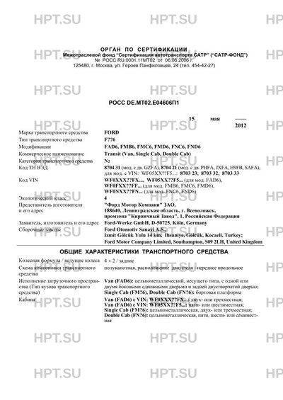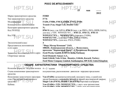 Коммерческое наименование Transit (Van, Single Cab, Double Cab)