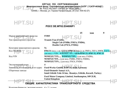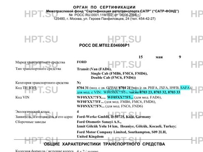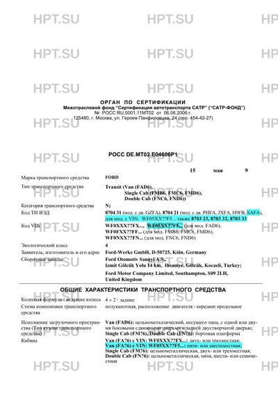 | Тип ТС | Transit (Van (FAD6), Single Cab (FMB6, FMC6, FMD6), Double Cab (FNC6, FND6)) |