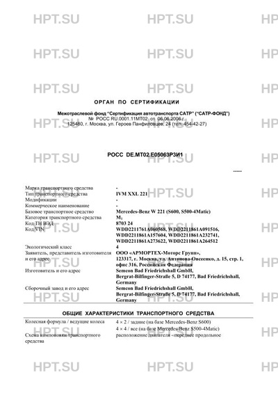 | Оборудование ТС | противоугонная система с защитой от буксировки (АТА), климатконтроль (TERMATIC) (хладагент R-134а), система контроля расстояния (DISTRONIC), система автоматического поддержания скорости (SPEEDTRONIC), электронная система обеспечения устойчивости (ESP), электронная система помощи при парковке (PARKTRONIC) |
