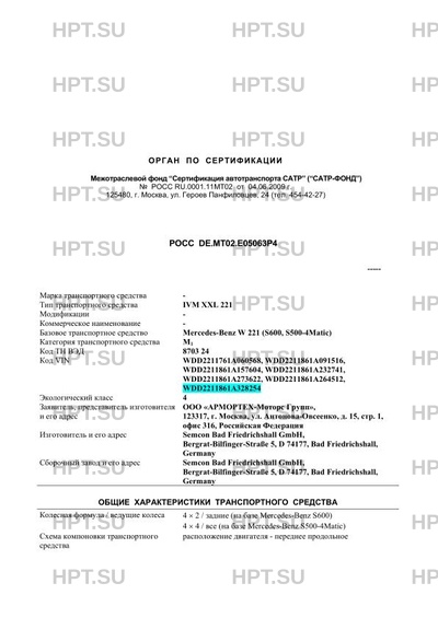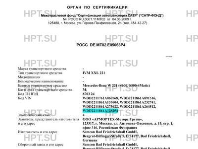 | Базовое ТС / Шасси | Mercedes-Benz W 221 (S600, S500-4Matic) |