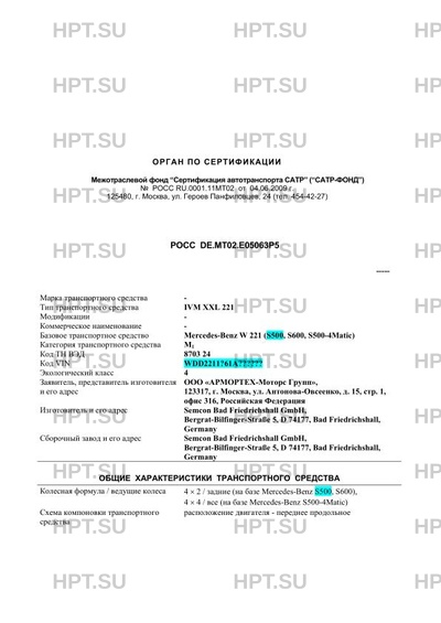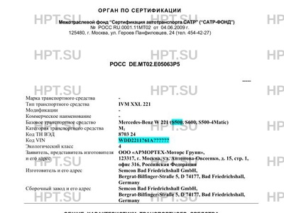 | Базовое ТС / Шасси | Mercedes-Benz W 221 (S500, S600, S500-4Matic) |