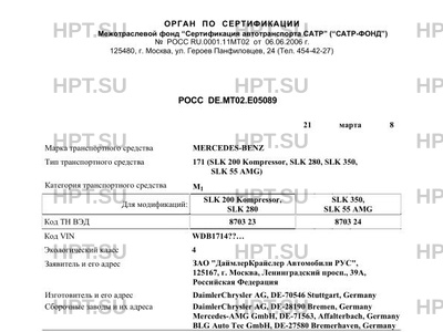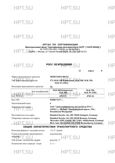| Коммерческое наименование | 171 (SLK 200 Kompressor, SLK 280, SLK 350, SLK 55 AMG) |