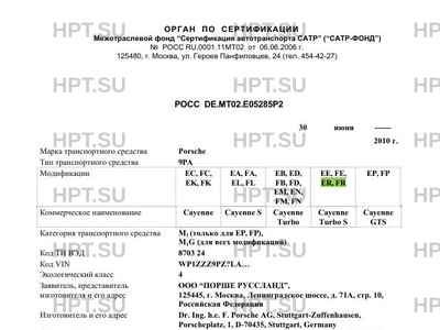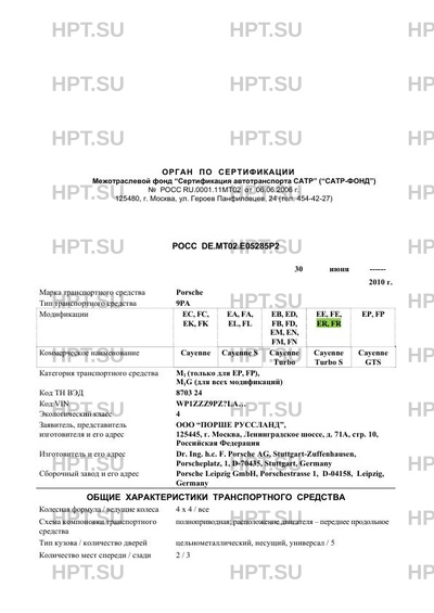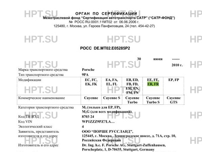 | Предприятие-изготовитель | Dr. Ing. h.c. F. Porsche AG, Stuttgart-Zuffenhausen, Porscheplatz, 1, D-70435, Stuttgart, Germany |