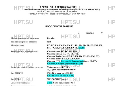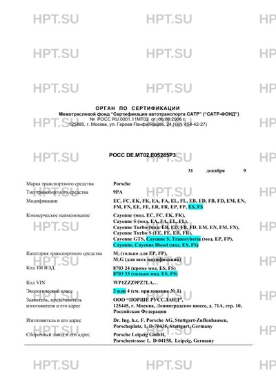 | Предприятие-изготовитель | Dr. Ing. h.c. F. Porsche AG, Stuttgart-Zuffenhausen, Porscheplatz, 1, D-70435, Stuttgart, Germany |
