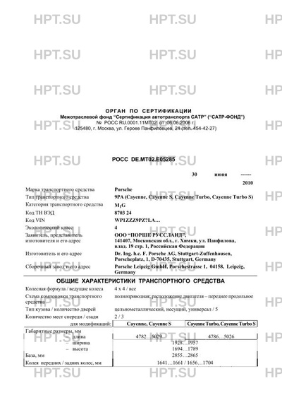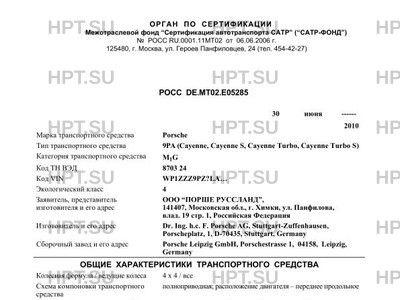 | Тип ТС | 9PA (Cayenne, Cayenne S, Cayenne Turbo, Cayenne Turbo S) |