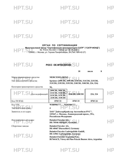 | Коммерческое наименование | Sprinter (209CDI, 309CDI, 211CDI, 311CDI, 213CDI, 313CDI, 215CDI, 315CDI, 218CD… |