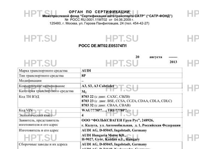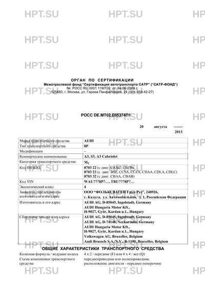 | Предприятие-изготовитель | AUDI AG, D-85045, Ingolstadt, Germany AUDI Hungaria Motor Kft., H-9027, Györ, Kardan u.1., Hungary |