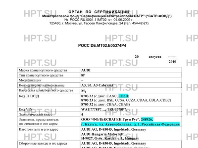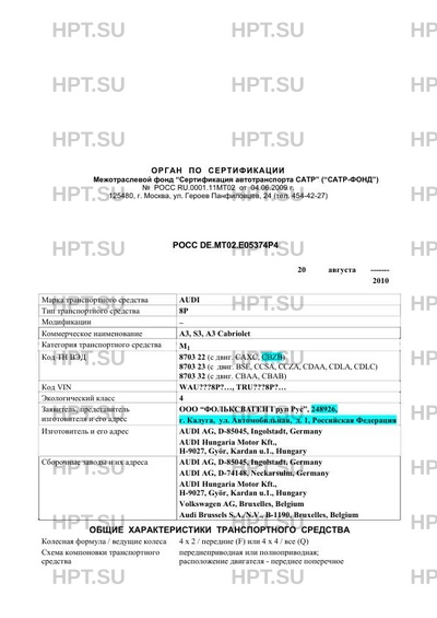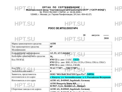 | Предприятие-изготовитель | AUDI AG, D-85045, Ingolstadt, Germany AUDI Hungaria Motor Kft., H-9027, Györ, Kardan u.1., Hungary |
