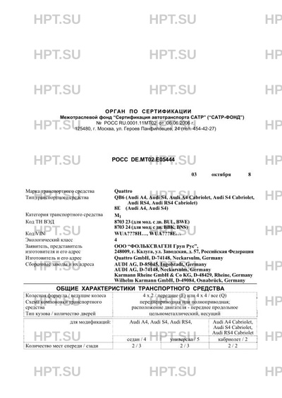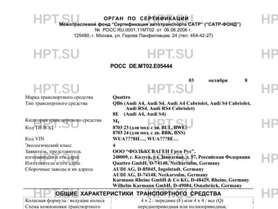 | Тип ТС | QB6 (Audi A4, Audi S4, Audi A4 Cabriolet, Audi S4 Cabriolet, Audi RS4, Audi RS4 Cabriolet) 8E (Audi A4, Audi S4) |