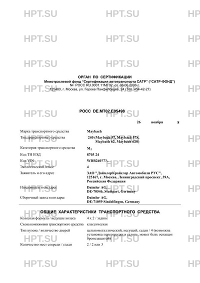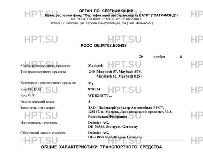 | Тип ТС | 240 (Maybach 57, Maybach 57S, Maybach 62, Maybach 62S) |