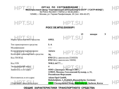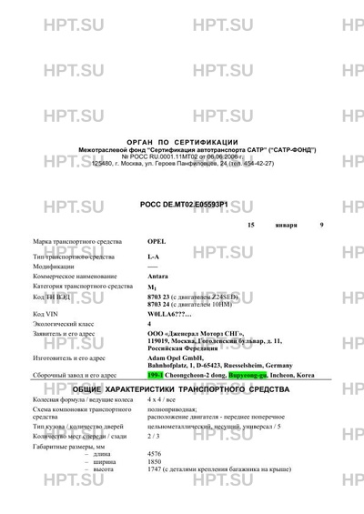 | Предприятие-изготовитель | Adam Opel GmbH, Bahnhofplatz, 1, D-65423, Ruesselsheim, Germany 199-1 Cheongcheon-2 dong, Bupyeong-gu, Incheon, Korea |