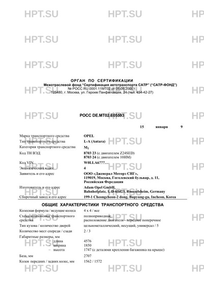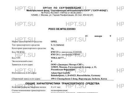 | Предприятие-изготовитель | Adam Opel GmbH, Bahnhofplatz, 1, D-65423, Ruesselsheim, Germany 199-1 Cheongcheon-2 dong, Bupyung-gu, Incheon, Korea |