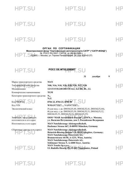 | Тип ТС | N08, N16, N18, N26, N28, N36, N37, N38 (12/13/15/18.240/280/330 4x2, 4x4 BB, BL, LL) TGM |