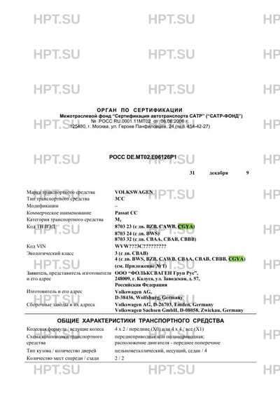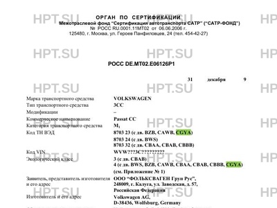 | Оборудование ТС | кондиционер (хладагент R134a), холодильник, противобуксовочная система (ASR), акустическая система для парковки (APS), электронная система обеспечения курсовой устойчивости (ESP), подготовка под установку телефона, бортовой компьютер, стереосистема, CD-проигрыватель, CD- чейнджер, подъемно-сдвижной люк в крыше с электрическим приводом и встроенной солнечной батареей, система крепления детского сиденья „ISOFIX", электронное противоугонное устройство, съёмное сцепное устройство, пульт дистанционного управления гаражными воротами, багажник на крыше, крепления для перевозки велосипедов, подушки безопасности 6 VOLKSWAGEN 3СС |