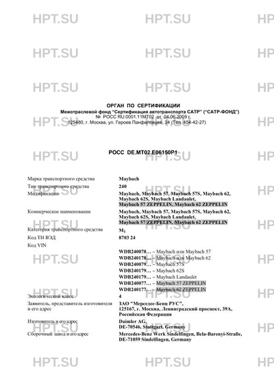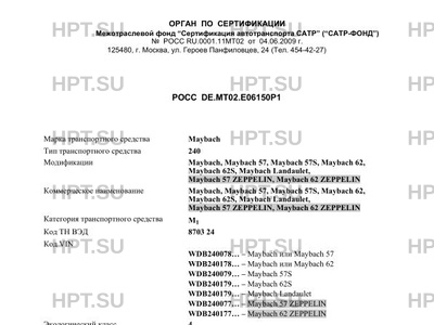 | Код VIN | WDB240078… - Maybach или Maybach 57 WDB240178… - Maybach или Maybach 62 WDB2400… |