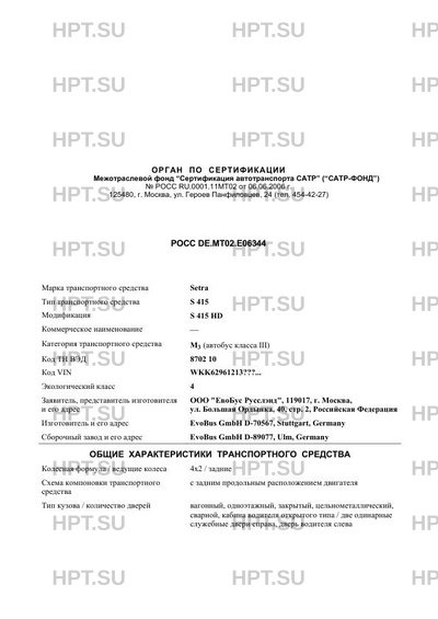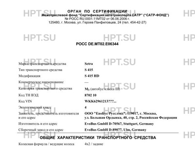 Предприятие-изготовитель EvoBus GmbH D-70567, Stuttgart, Germany