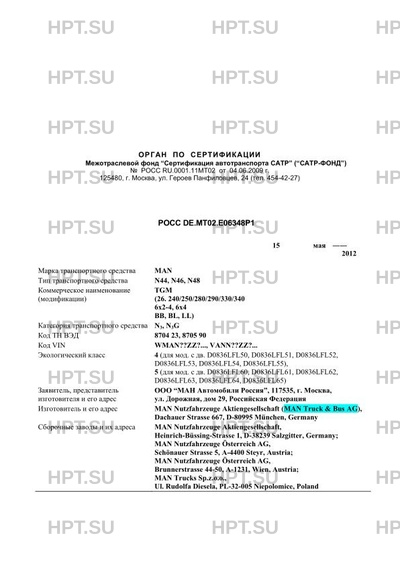 | Сборочный завод | и их адреса MAN Nutzfahrzeuge Aktiengesellschaft, Heinrich-Büssing-Strasse 1, D-38239 Salzgitter, Germany; MAN Nutzfahrzeuge Österreich AG, Schönauer Strasse 5, A-4400 Steyr, Austria; MAN Nutzfahrzeuge Österreich AG, Brunnerstrasse 44-50, A-1231, Wien, Austria; MAN Trucks Sp.z.o.o., Ul. Rudolfa Diesela, PL-32-005 Niepolomice, Poland 2 |