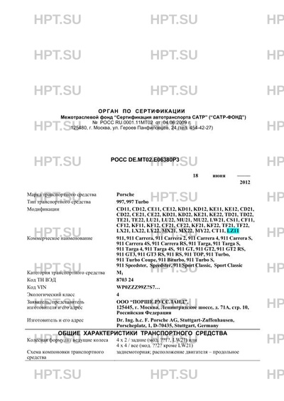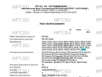 | Тип ТС | 997, 997 Turbo |