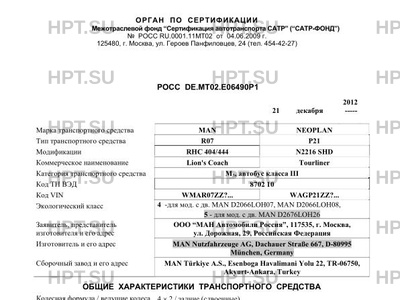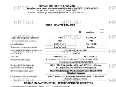Заявитель ООО “МАН Автомобили Россия”, 117535, г. Москва, ул. Дорожная, 29, Российская Федерация