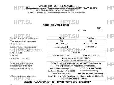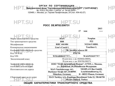 | Код VIN | WMAR08ZZ??T?... (для MAN), WAGP22ZZ??Т? (для Neoplan) |