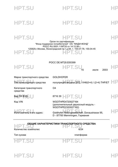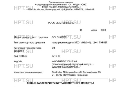 | Марка ТС | GOLDHOFER |