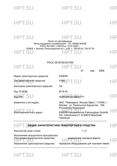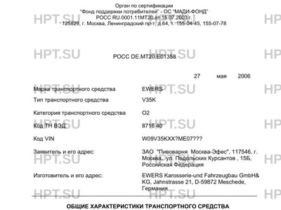 | Марка ТС | EWERS |