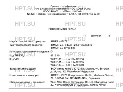 | Код VIN | WJE0180… - для IRMAIR 2.0; WJE0181… - для IRMAIR 2.5; WJE0183… - для IRMAIR 3.0 |