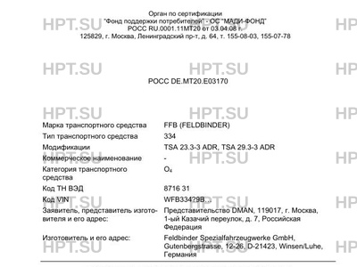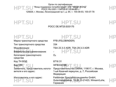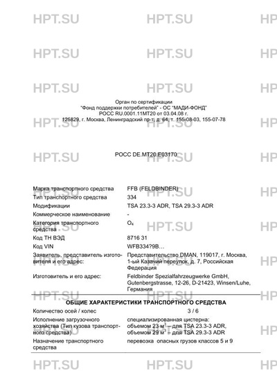 | Предприятие-изготовитель | Feldbinder Spezialfahrzeugwerke GmbH, Gutenbergstrasse, 12-26, D-21423, Winsen/Luhe, Германия |