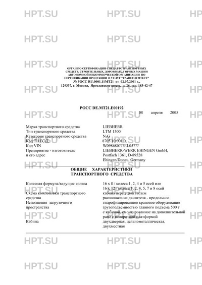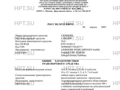 | Тип ТС | LTM 1500, Категория транспортного средства N3G |