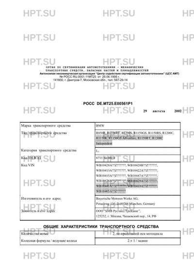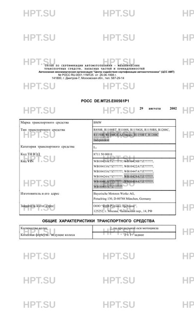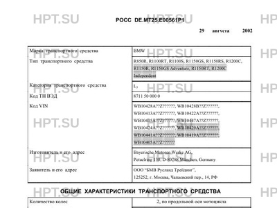 | Тип ТС | R850R, R1100RT, R1100S, R1150GS, R1150 RS, R1200C, R1150R, R1150GS Adventure, R1150RT,R1200C Indepent |