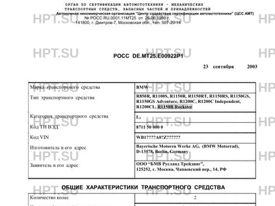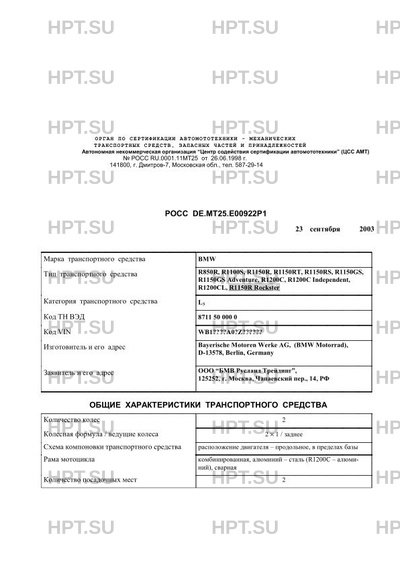 | Тип ТС | R 850R, R1100S, R1150R, R1150RT, R1150RS, R1150GS, Adventure, R1200C, R1200C Indepent, R1200CL, R1150R Rockstar |